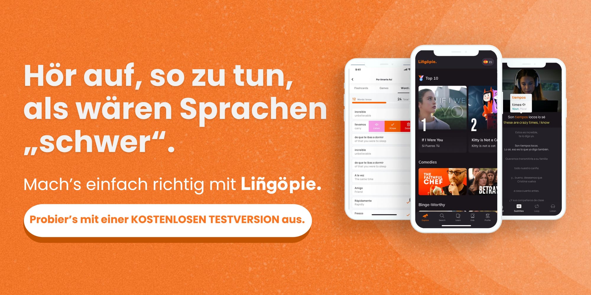 Na, hat dich einer deiner Lieblings-Stars besonders neugierig gemacht? Mit Lingopie kannst du direkt loslegen und deine Korean-Skills auf das nächste Level bringen! Ob du mit Lee Min-ho durch verschiedene Dimensionen reist, mit Hyun Bin in Nordkorea landest oder mit Park Seo-joon eine Bar in Itaewon aufbaust – hier lernst du Koreanisch, wie es wirklich gesprochen wird!